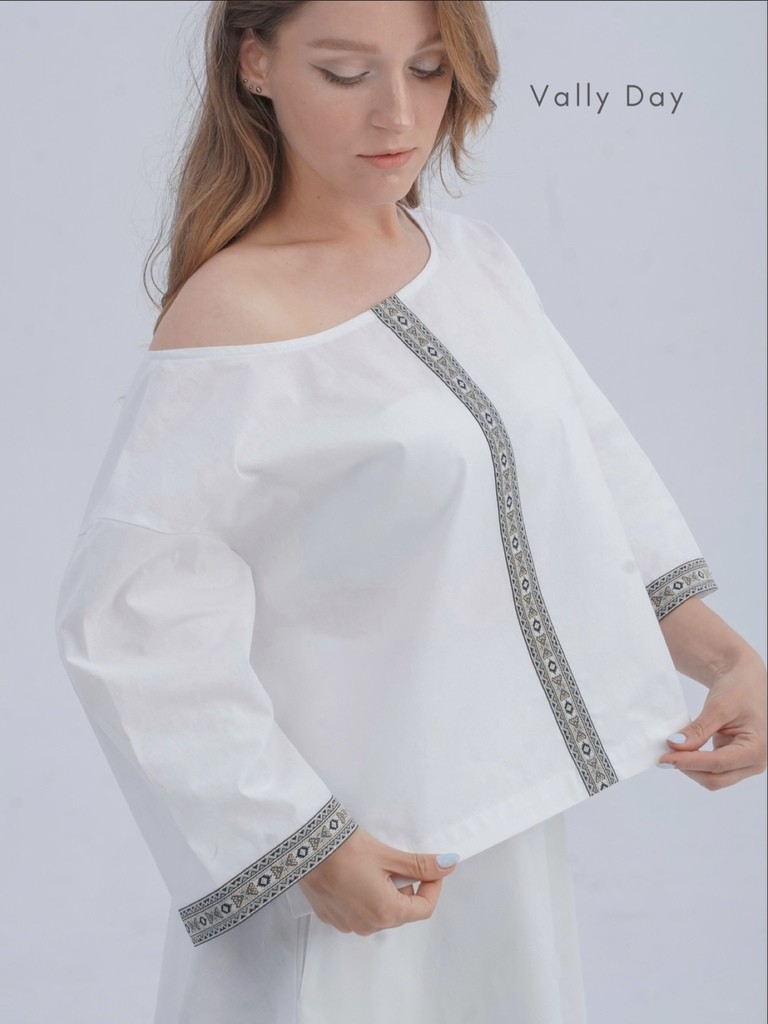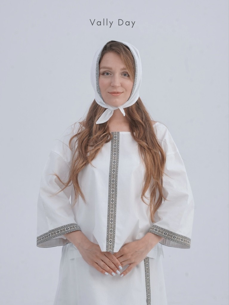 Все части костюма отделаны лентой с орнаментом, что придаст вашему образу изюминку традиционного славянского костюма.